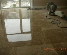 拋光:翻新拋光不是通過石材加工中的磨片加工的,而是通過拋光機(jī)底盤的百潔墊與拋光粉的摩擦,石材表面光度更均勻,更明亮。
