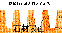 分成滲透型防護(hù)與披覆型防護(hù)兩種工法;材質(zhì)略說成有機(jī)質(zhì)與無機(jī)質(zhì)兩大類;溶劑概括有水性、油性兩大類,功能以抗水與抗油來區(qū)分等級(jí);標(biāo)的以正面與背面為化分;色度以透明與濕艷為差異。其原理是將極細(xì)致的防護(hù)劑成,經(jīng)由溶劑將樹脂或礦物質(zhì)成分注入石材的毛細(xì)孔中,經(jīng)過一小段時(shí)間的滲透及揮發(fā)后,將會(huì)留下抗污成分,并將毛細(xì)孔填充,達(dá)到降低石材吸收水分及污染的作用。這種優(yōu)點(diǎn)是施工簡單,透氣良好,但防護(hù)的程度并不絕對足夠,揮發(fā)的溶劑仍然留下空隙。目前最新的無機(jī)披覆防護(hù)晶崗膜,能完整包裹石材,高級(jí)度的保護(hù)石材,并能具有透氣性,抗污、抗病變的功能,可說超越傳統(tǒng)防護(hù)工法甚多。但這與不透氣有機(jī)質(zhì)的披覆樹脂膜是不一樣的材料特性,防護(hù)晶崗膜要多道噴拋處理是最大的不同。